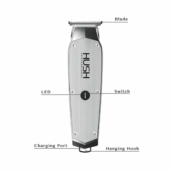 Машината за контурно подстригване HUSH идва оборудвана с остриетата тип T-Wide които предлагат точно рязане, литиево - йониева батерия, която може да функционира 120 минути нон стоп. Перфектна е за контур на брадата или за дизайн.