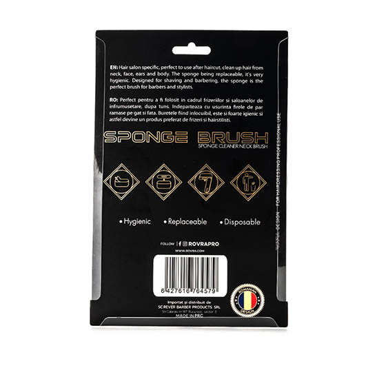 Перфектна да бъде използвана сред бръснарите и салоните за красота, след подстригване. Отстранява с лекова космите останали по врата и лицето. Гъбата се сменя, хигиенична е и така този продукт се превръща в предпочитан от бръснарите.