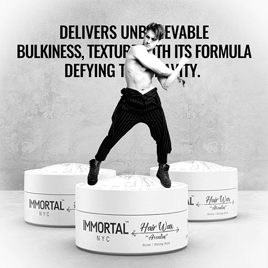 Вакса за коса Immortal NYC Aventus Hair Wax е вакса лесна за нанасяне, със силна фиксация и блясък. Оформя кичурите, придавайки им шик вид. Ваксата е със силна фиксация 8/9, което означава че косата ще остане в желаната позиция през целия ден.