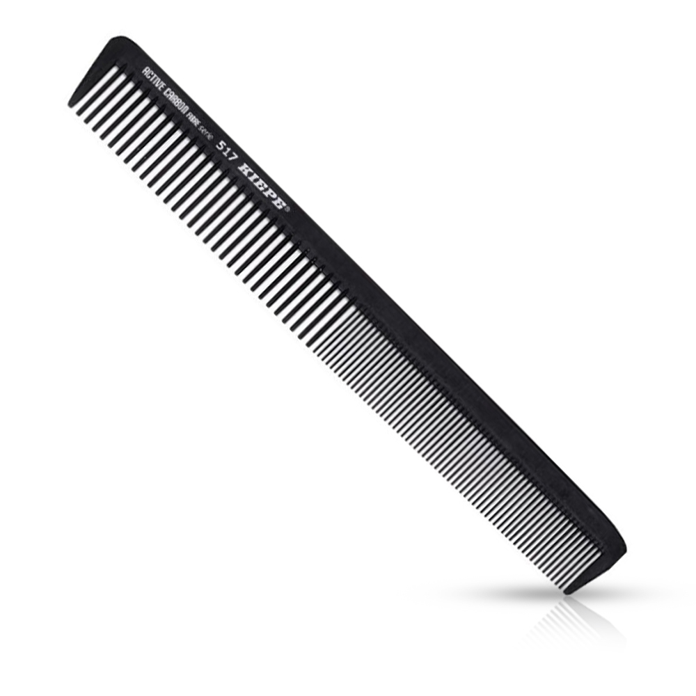 Гребенът Active Carbon-517 е един от най-популярните продукти на марката, който е забелязан и продаван на пазара на фризьорски услуги. Самият модел е специално проектиран за подстригване и усъвършенстване както на страничните, така и на горните части на косата.Той помага много при подстригването на косата, създавайки перфектни линии.Изработен от много издръжлив и термоустойчив пластмасов материал, отличаващ се с много висока гъвкавост, той има страна с по-тънки зъби за страничните части и по-тънка страна за горната част.Имайки гладка повърхност с фини зъби, той дава на стилиста контрол за лесно и полезно боравене за по-добро внимание към детайлите.