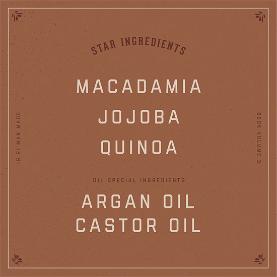 18.21 Manmade е известна марка от САЩ, символ на мъжествеността. Чрез продуктите за лична хигиена, насърчават мъжете да се чувстват уверени в себе си и да постигнат всичко което си поставят за цел. Опаковките са вдъхновени от епохата на prohibitiei когато се е крило пиенето или други ценни вещи в библиотеките. Серията е разнообразна, от шампоани за повече приложения, до олиа, парфюми и подходящи комплекти за подаръци които ще ги помни всеки мъж.