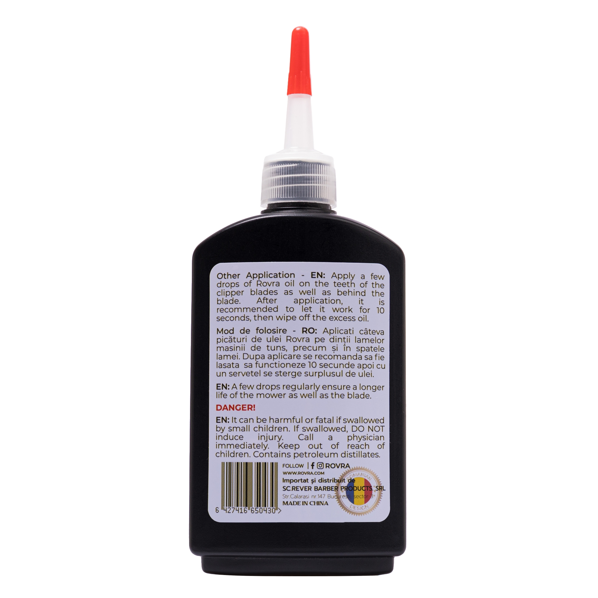 С формула, създадена специално за поддръжката и смазването на машинките за подстригване, ROVRA предлага на пазара продукт за грижа за остриетата при нормални параметри, който не оставя остатъци по остриетата и поддържа дългия им експлоатационен живот.