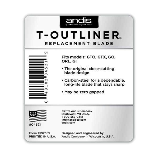 Ножовете от въглеродна стомана, предлагани от ANDIS, са с дебелина на среза 0,1 мм. Моделът на ножовете, който е във формата на буквата "Т", предлага съвместимост с няколко машини от гамата на ANDIS (GTO, GO, SL, SLS).