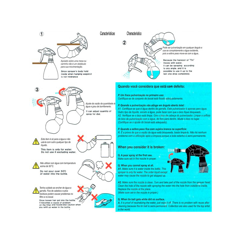 Пулверизаторът е необходима част и незаменима от всеки фризьорски / бръснарски салон. Разполага с голяма лекота в използването му и благодарнеие на ергономичната му форма, има иновативен дизайн, произведен от траен винилхлорид. Издържа на удари, побира до 220 мл течност.
