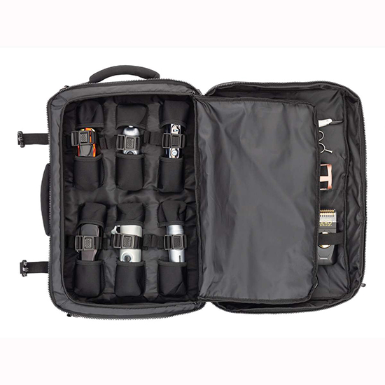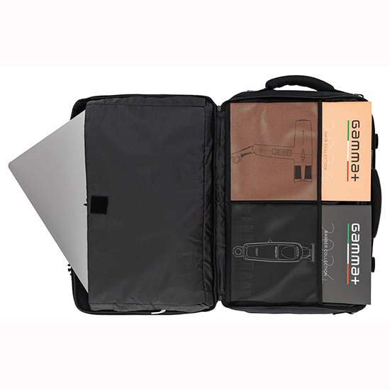 Транспортирай с лекота инструментите от твоето работно място, разполагайки с достатъчно място за складиране. С разделения за цялата гама бръснарски инструменти, тяхното превозване става много лесно, като раницата се превръща в необходим аксесоар. Разполага с притовошокови/противоударни джобове с ластик за захващане на аксесоарите. Всяко разделение е организирано така че всички професионални инструменти да могат да бъдар складирани и превозвани подредени и в сигурност.