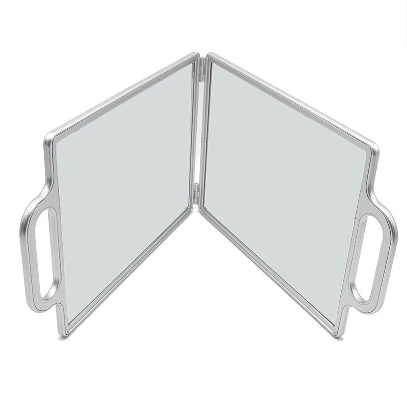 Огледалото е много практично и гъвкаво, което се предлага от BARBER STORE. Удобно е подари размерите си и лесно за транспортиране. Рамката на огледалото е сребрист метал, предвидена с дръжка , за по-лесно използване и с държач за закачване.