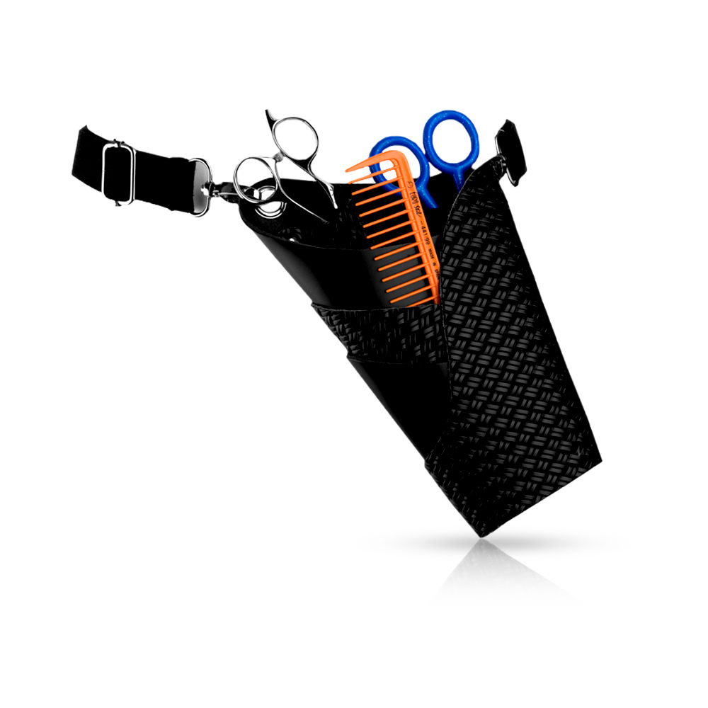 Удобна чантичка за бръснарски ножици, за използване по време на работа. Подарете си голяма ефективност в движението и спестете време с тази чанта, която може да се носи на кръста. Изработена е от екокожа и има 2 места за поставяне на бръснарски инструменти.