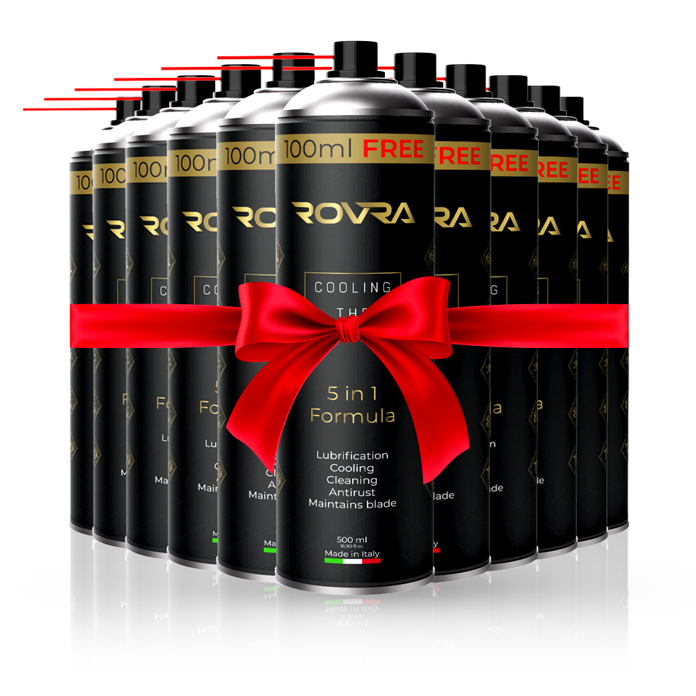 Pentru omogenizarea celor 5 substante din interiorul acestui spray, ROVRA foloseste bila de plumb,care, cu o agitare prealabila ungerii, creste presiunea, si asigura amestecul ideal.Ungerea se face printr-un strat fin lubrifiant ce protejeaza si reduce uzura lamelelor.Un anticoroziv foarte bun astfel prelungeste durata de viata a lamelelor Curata eficient prin presiunea eliberata si indeparteaza praful, murdaria si firele de par ascunse intre lamelele masinii.